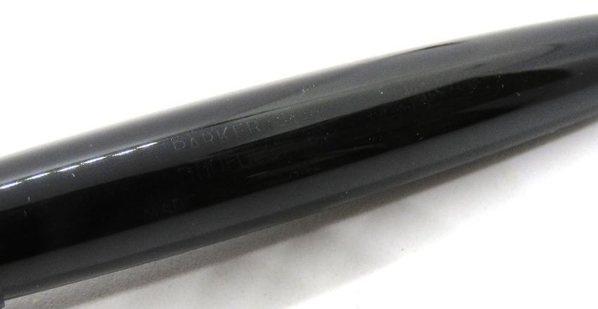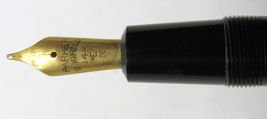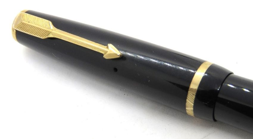 A Parker Duofold fountain pen with 14ct gold nib, black case, aerometric fill, c.1958.