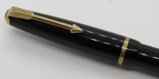 A Parker Slimfold fountain pen with 14ct gold nib, black, aerometric fill, c.1962.