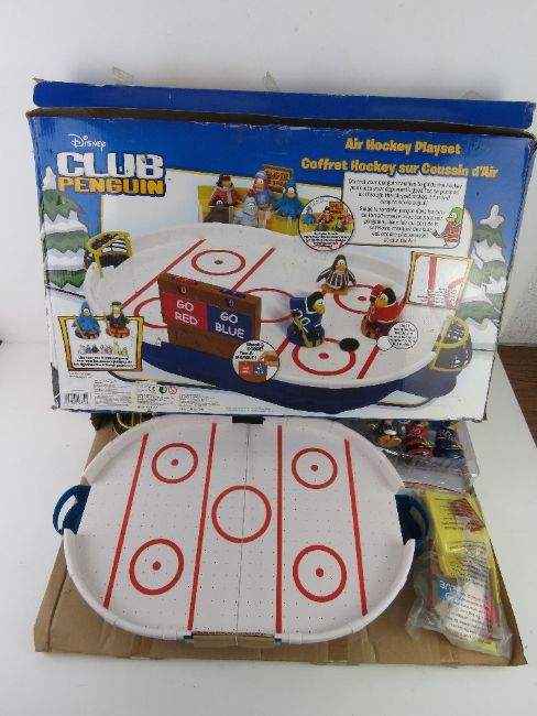 A Disney Club penguin air hockey playset.