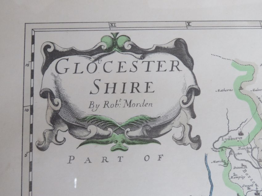 Print; Map of Gloucestershire by Robert Morden, sight size approx 36.5 x 29.5cm in Hogarth style frame, 46.5 x 40cm overall.