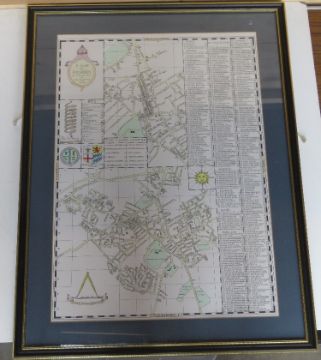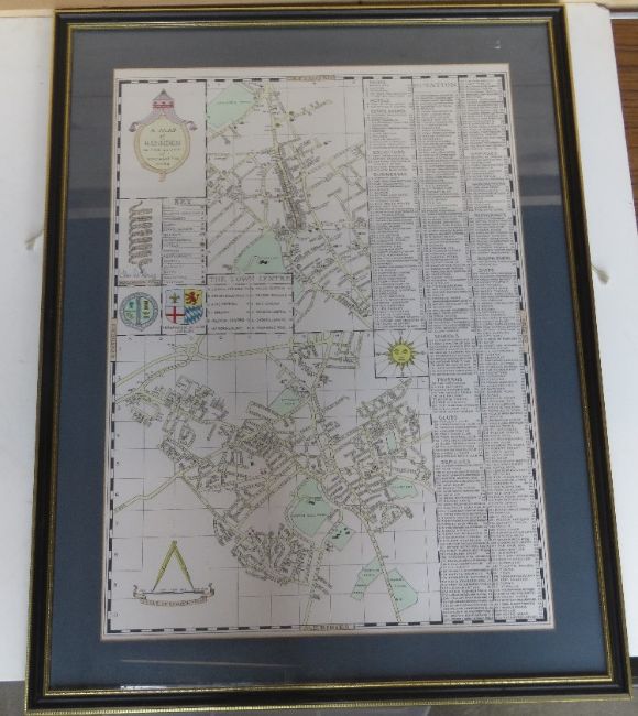 A contemporary map of Rushden in the County of Northamptonshire, mounted and within Hogarth style frame, sight size approx 41 x 58cm, overall approx 45 x 72.5cm.