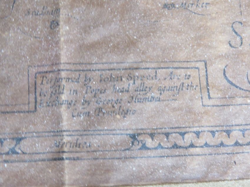 Map of Bedfordshire by John Speed, having Arms of the Honourable Families upon, folds noted, mounted and in contemporary frame, sight size approx 45 x 34.5m, overall approx 54.5 x 42cm.