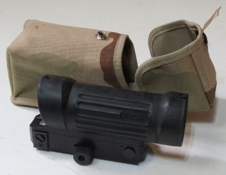 An Elcan 4 x reticle scope with Picatinny mount in US Military pouch.