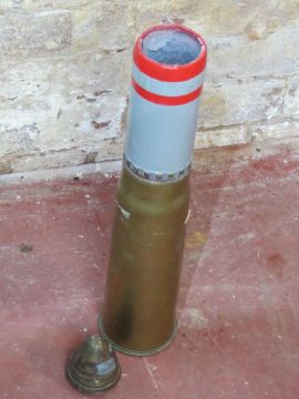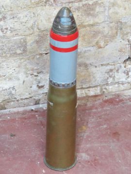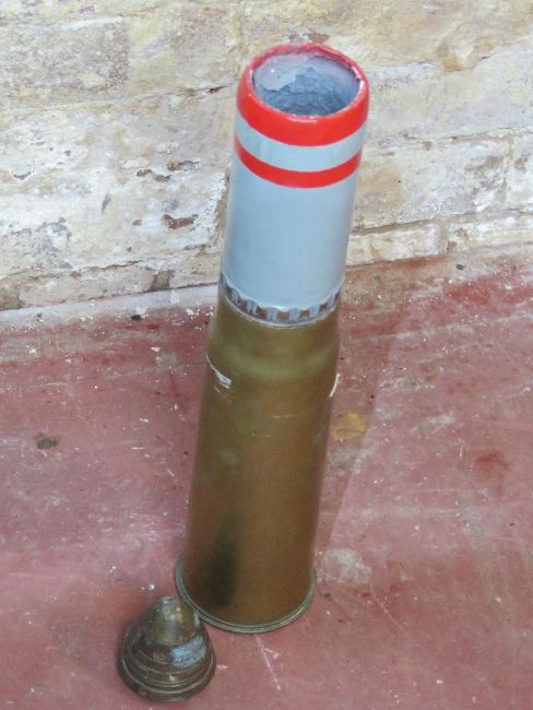 An inert WWI British 13pr shell, dated 1917, bearing British markings upon, the thread on casing worn.