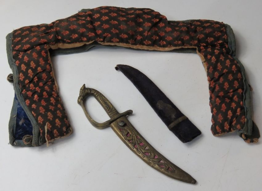 A knife with scabbard, together with another scabbard and a chain coat collar.