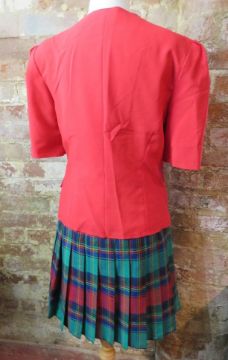 A c1980s blazer and tartan skirt suit, jacket size 12, skirt size 14.