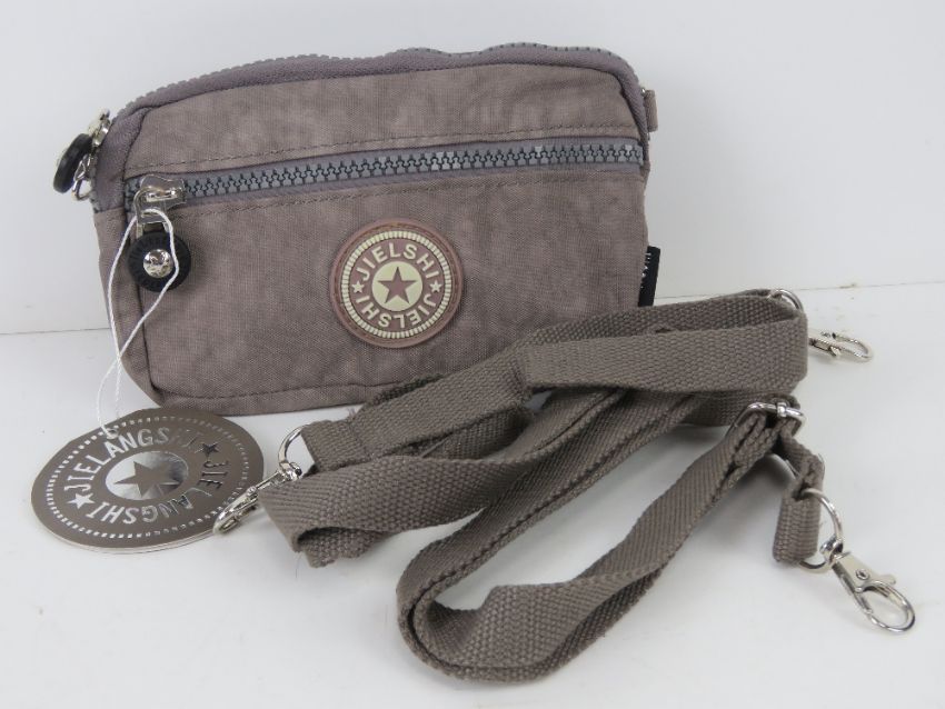 A fabric clutch bag/handbag 'as new' 18 x 11cm in taupe.