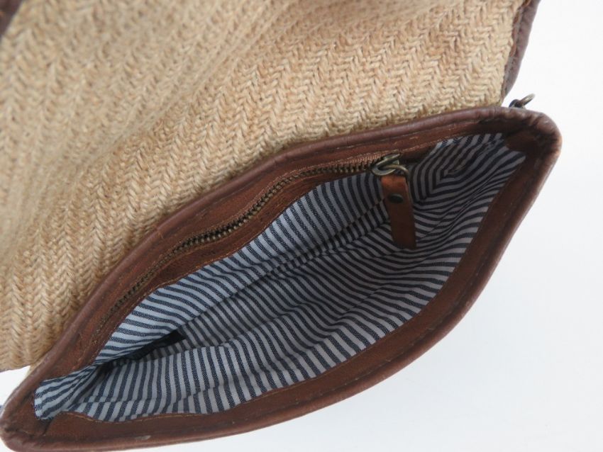 A Massimo Dutti hessian and brown leather handbag, 27 x 20cm.