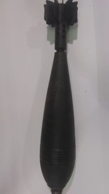 An inert Russina 12cm mortar shell. This lot will be available to collect in person 48 hours after the end of the sale. Please contact the office admin@humbertellis.com for collection appointments / postage quotes / courier information.