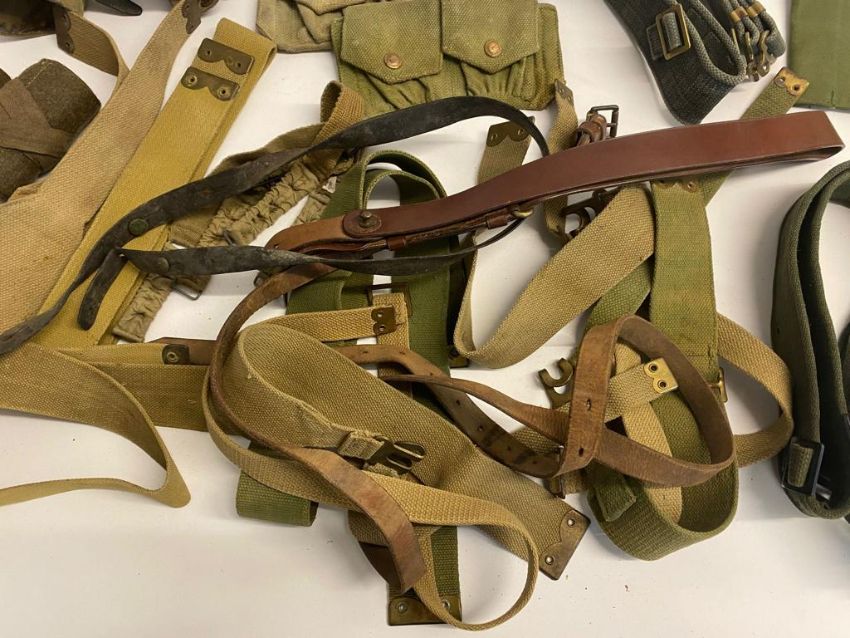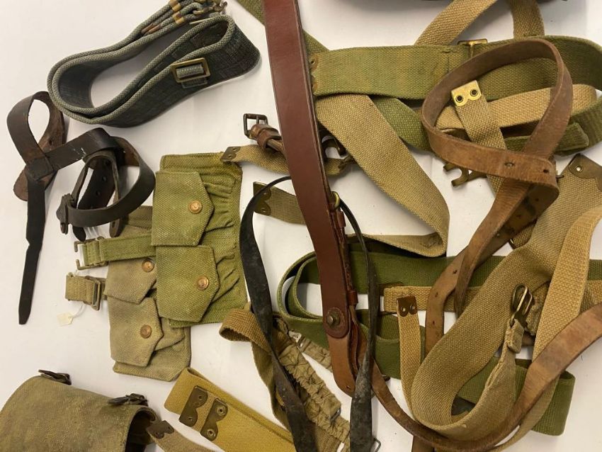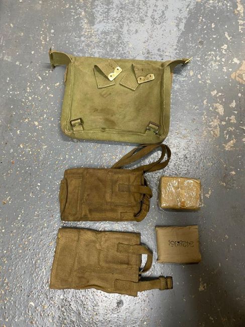 A quantity of assorted militaria including WWII British pouches, putties, gators, Bren spares, etc. This lot will be available to collect in person 48 hours after the end of the sale. Please contact the office admin@humbertellis.com for collection appointments / postage quotes / courier information.