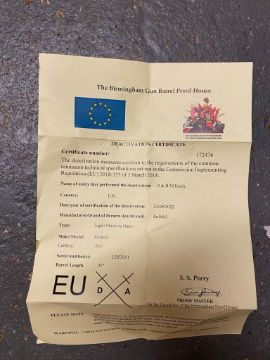 A deactivated (EU Cert) Bren MK3 with moving cocking handle, trigger and removable magazine. This lot will be available to collect in person 48 hours after the end of the sale. Please contact the office admin@humbertellis.com for collection appointments / postage quotes / courier information.