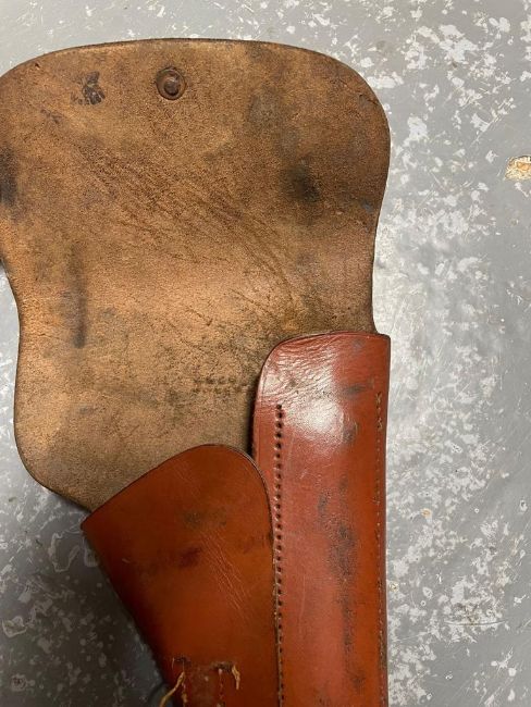 A leather WWII German Browning high power holster, front tab needs stitching. This lot will be available to collect in person 48 hours after the end of the sale. Please contact the office admin@humbertellis.com for collection appointments / postage quotes / courier information.