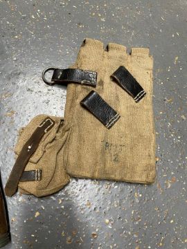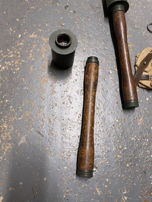 A reproduction WWII German MP40 mag pouch and two inert dummy stick grenades. This lot will be available to collect in person 48 hours after the end of the sale. Please contact the office admin@humbertellis.com for collection appointments / postage quotes / courier information.