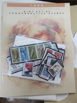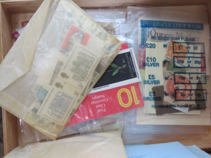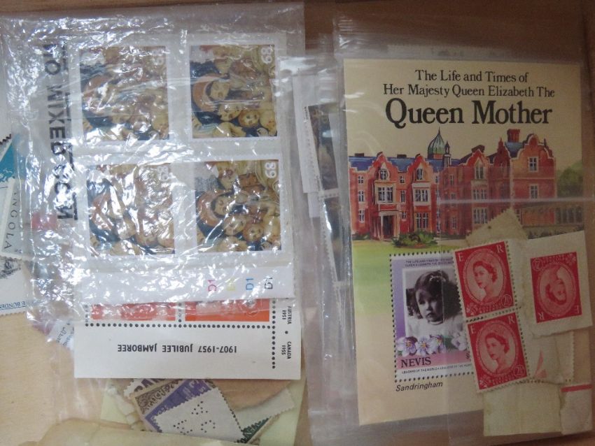 A quantity of assorted stamps and ephemera including collectors tin, 1986 Mint SEt of Commemorative Stamps, etc.