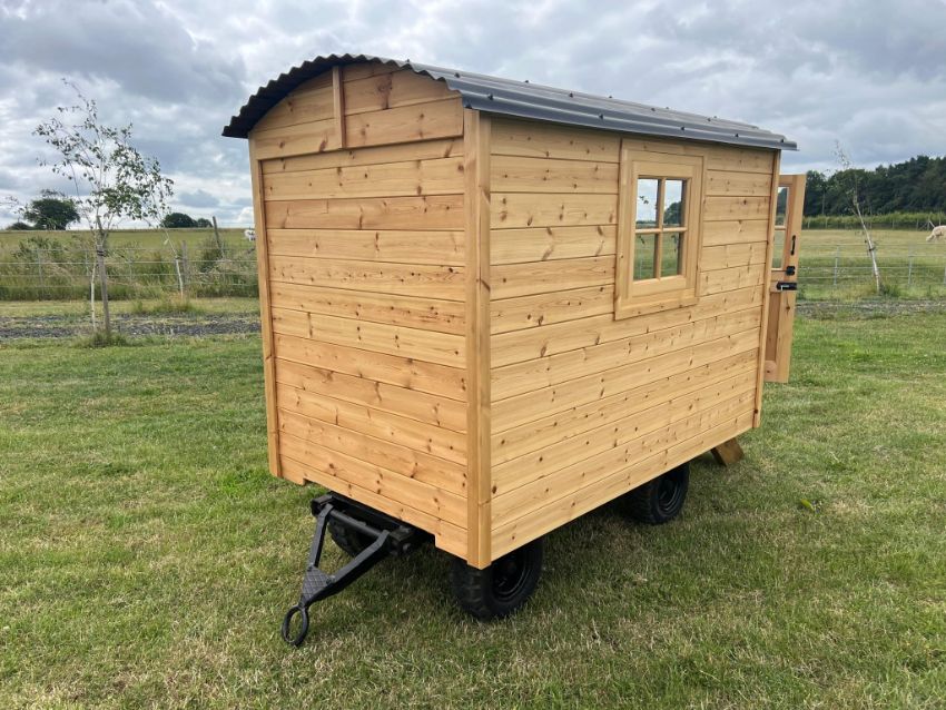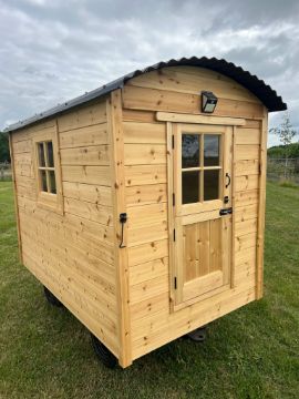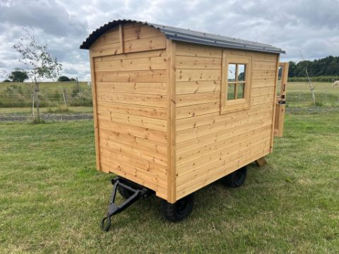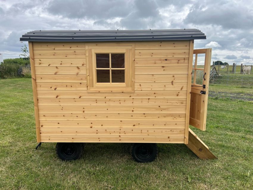 Bespoke Children's half-scale Shepherds Hut Playhouse. Measuring 7' x 4'3" (2.13m x 1.3m) Built on heavy duty turntable trailer, 2" x 2" studwork throughout, plywood and tongue & groove base, cloaked in Tyvec & Thermawrap and TGV within and out. Handmade window and stable door. Complete with steps. Traditional corrugated roof. Nationwide delivery available.