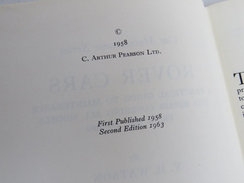 Book; Rover Cars by V.H. Watson, published by C. Arthur Pearson Limited 1963.