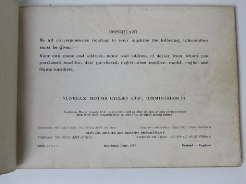 An instruction manual for a Sunbeam 500 OHC twi printed June 1957.