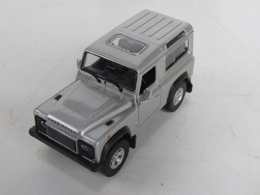 A die cast scale model Fiat 500 by Cararama 1:43 scale together with a Landrover Defender in silver. Two items.