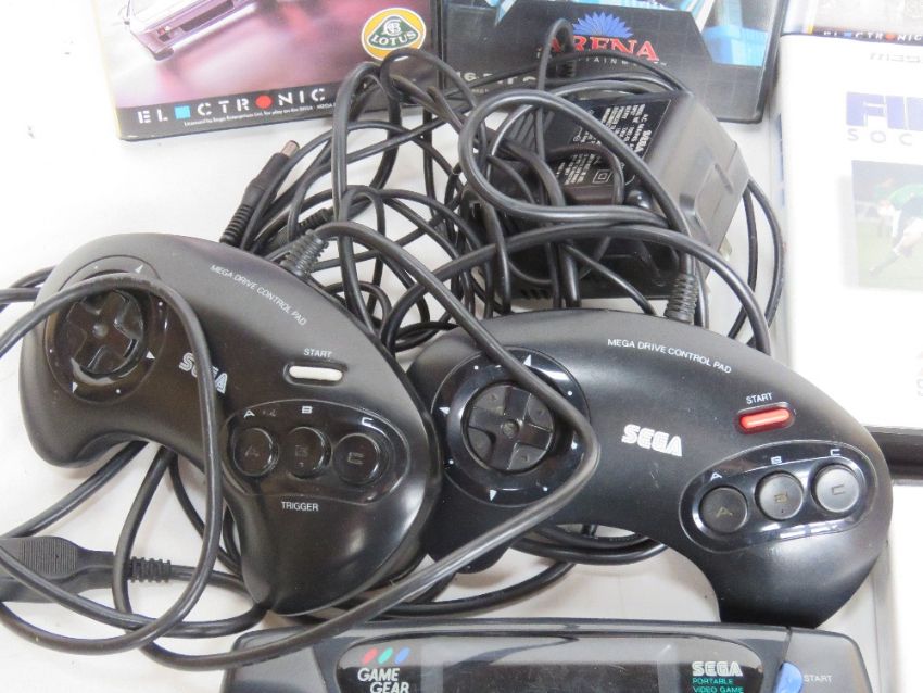 A Sega portable video game console together with Sega games cartridges, Sega controllers etc. Disclaimer - all items in this sale are sold as untested without guarantee.