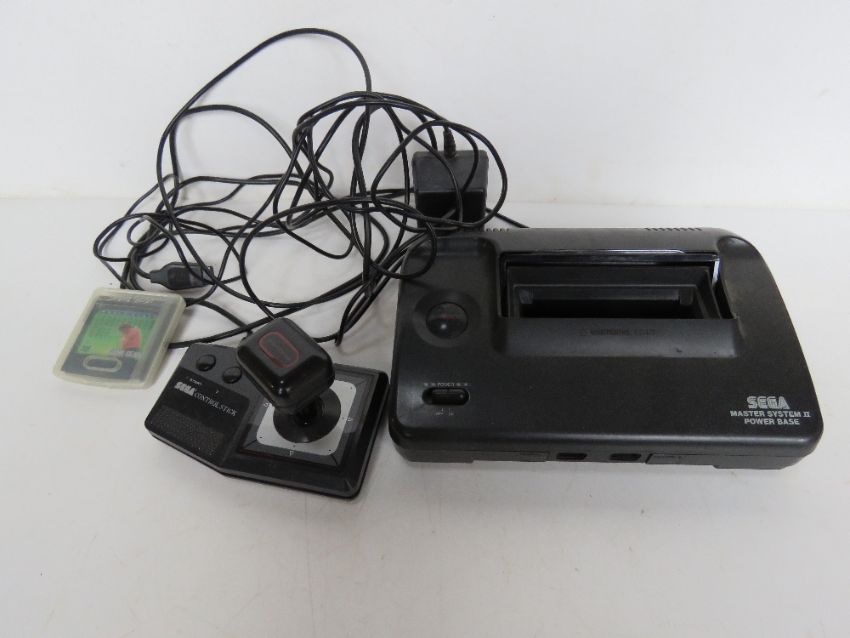 A Sega Master System II power base with game cartridge and controller. Disclaimer - all items in this sale are sold as untested without guarantee.