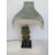 A Thai Siam Khmer style Singha Imperial lion Foo dog temple sculpture, terracotta with bronze verdigris and gilt paint upon, standing approx 27.5cm high, mounted on a later wooden base with lamp fitting, as converted by Goodson Lighting Ltd, bearing label to base, shade slightly a/f, all standing approx 57cm high.