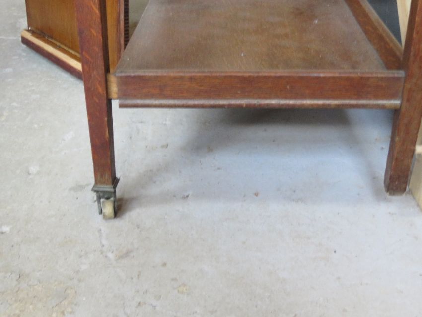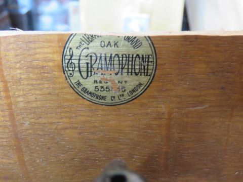 An HMV Library Bijou Grand Oak gramophone by the Gramophone Company Ltd London, c1909, for restoration. Measuring approx 116.5cm high, 44.5cm wide, 64.5cm deep.