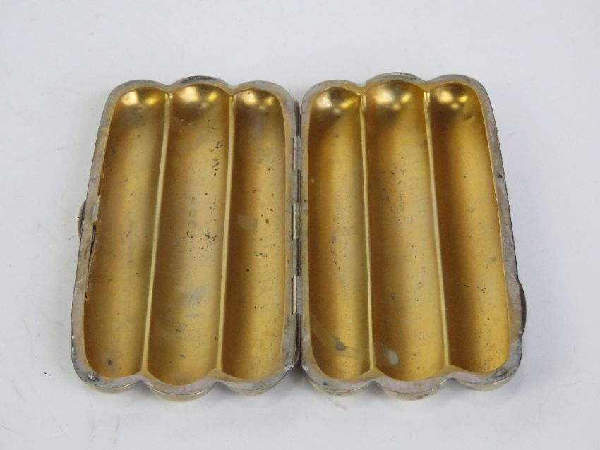 A hallmarked silver cigar case having gilt interior and space for three cigars.