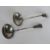 A silver plated three sconce candelabra together with 2 large silver plated ladles, a base metal teapot and a calling card tray.