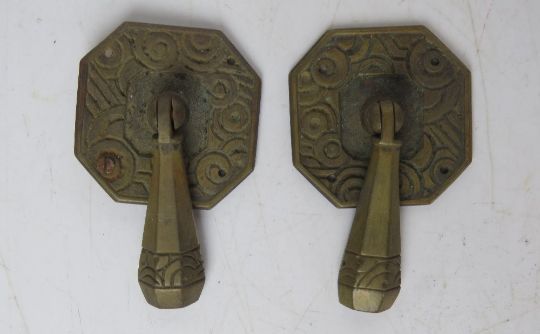 A delightful pair of Arts & Crafts drawer handles together a brass lion's mask pull handle.