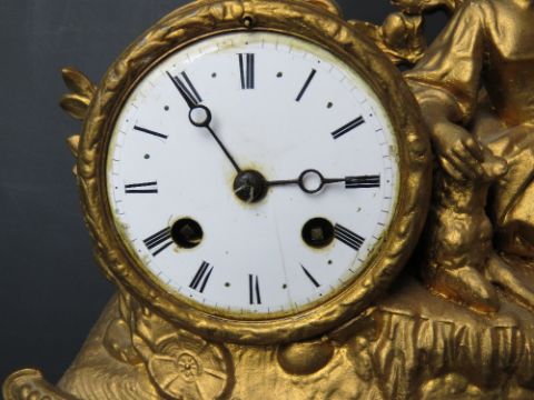 A 19thC continental mantel clock raised over a matching velvet base. Enamelled face with Roman numerals, all before the eight day movement striking on a Japy Freres bell and measuring 40cm wide x 33cm high.