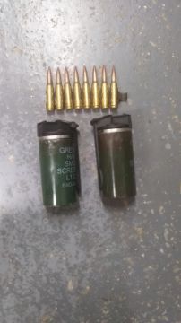 Two inert British L132 smoke grenades, together with eight inert 7.62 NATO rounds in link. This lot will be available to collect in person 48 hours after the end of the sale. Please contact the office admin@humbertellis.com for collection appointments / postage quotes / courier information.