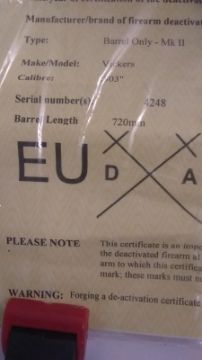 A WWII MKII Vickers HMG barrel, Australian Lithgow manufacture. This lot will be available to collect in person 48 hours after the end of the sale. Please contact the office admin@humbertellis.com for collection appointments / postage quotes / courier information.