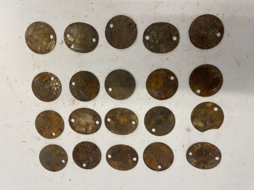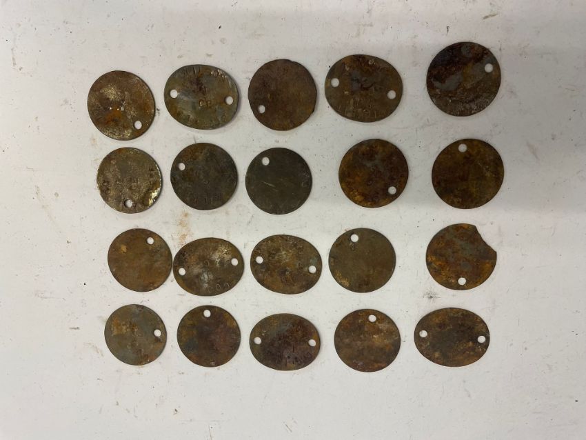 A quantity of WWII British Army dog tags, twenty items. This lot will be available to collect in person 48 hours after the end of the sale. Please contact the office admin@humbertellis.com for collection appointments / postage quotes / courier information.