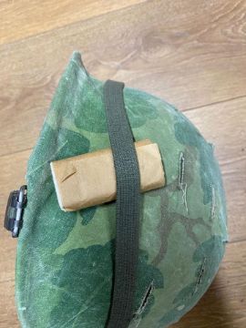 A US Vietnam M1 helmet with foliage band, matches and big roll, dated 68/69. This lot will be available to collect in person 48 hours after the end of the sale. Please contact the office admin@humbertellis.com for collection appointments / postage quotes / courier information.
