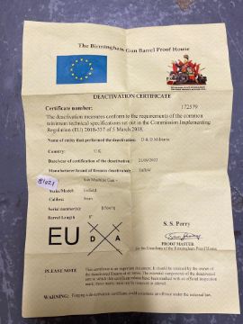 A deactivated (EU Cert) Sten MkIII SMG with moving bolt that locks back. This lot will be available to collect in person 48 hours after the end of the sale. Please contact the office admin@humbertellis.com for collection appointments / postage quotes / courier information.