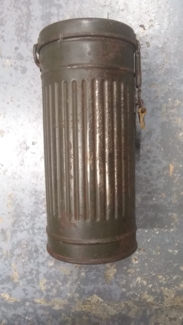 A WWII German gas mask can. This lot will be available to collect in person 48 hours after the end of the sale. Please contact the office admin@humbertellis.com for collection appointments / postage quotes / courier information.