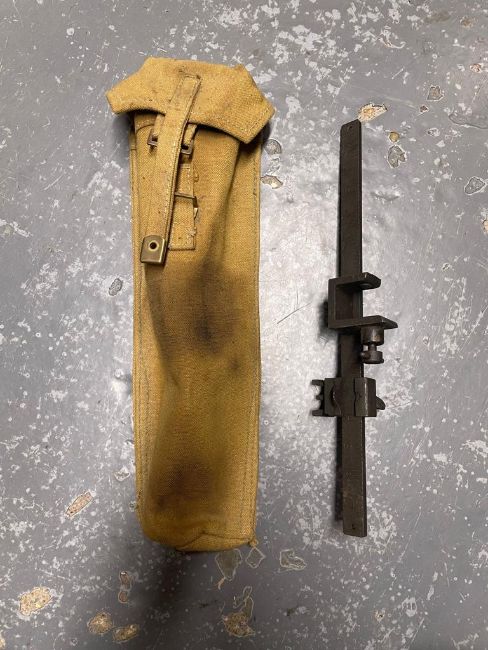 A Vickers WWII front sight in case together with a leather Vickers Clinometer case dated 1943. This lot will be available to collect in person 48 hours after the end of the sale. Please contact the office admin@humbertellis.com for collection appointments / postage quotes / courier information.