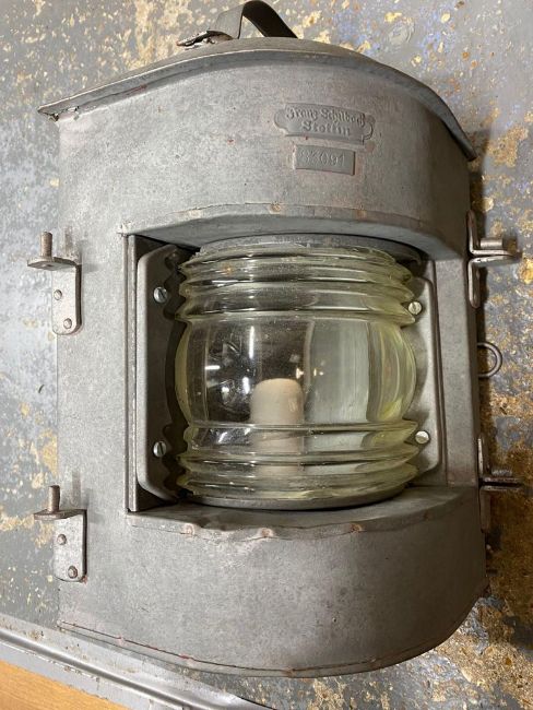 Two WWII Vickers and Maxim oil cans together with a vintage Franz Schilbach Stettin ships lantern (modified for use as a lamp - untested without guarantee). This lot will be available to collect in person 48 hours after the end of the sale. Please contact the office admin@humbertellis.com for collection appointments / postage quotes / courier information.