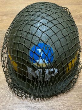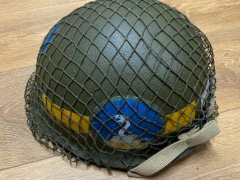 A US M1 military police helmet with a Vietnam era liner, modern decals, with netting and chin strap. This lot will be available to collect in person 48 hours after the end of the sale. Please contact the office admin@humbertellis.com for collection appointments / postage quotes / courier information.