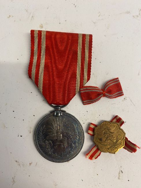 A WWII Japanese red cross medal and lapel badge in box. This lot will be available to collect in person 48 hours after the end of the sale. Please contact the office admin@humbertellis.com for collection appointments / postage quotes / courier information.