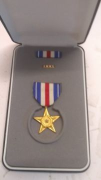 A US 'Silver Star' medal with ribbon and box. This lot will be available to collect in person 48 hours after the end of the sale. Please contact the office admin@humbertellis.com for collection appointments / postage quotes / courier information.