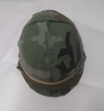 A 1980's US M1 helmet with liner and woodland camo cover. This lot will be available to collect in person 48 hours after the end of the sale. Please contact the office admin@humbertellis.com for collection appointments / postage quotes / courier information.