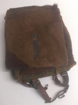 A WWII German 1942 dated leather haversack with fur lining. This lot will be available to collect in person 48 hours after the end of the sale. Please contact the office admin@humbertellis.com for collection appointments / postage quotes / courier information.