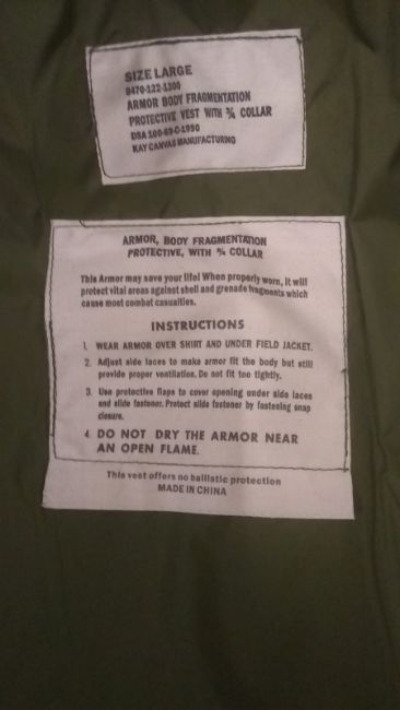 A US armour vest. This lot will be available to collect in person 48 hours after the end of the sale. Please contact the office admin@humbertellis.com for collection appointments / postage quotes / courier information.