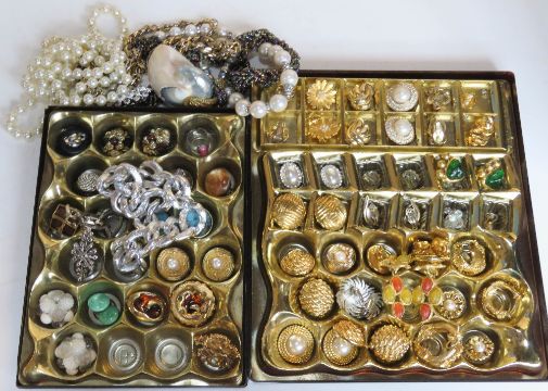 A quantity of 1970s costume jewellery including Gres Paris clip on earrings, Rochas Paris necklcase, Veronique Cheranich Paris Earrings, etc