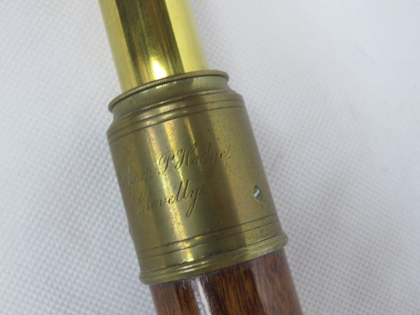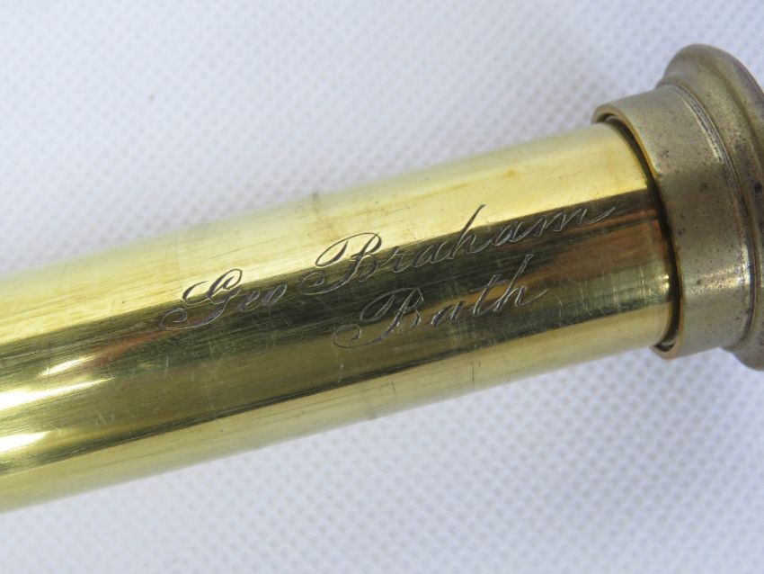 A brass and mahogany telescope marked for Geo Braham Bath.