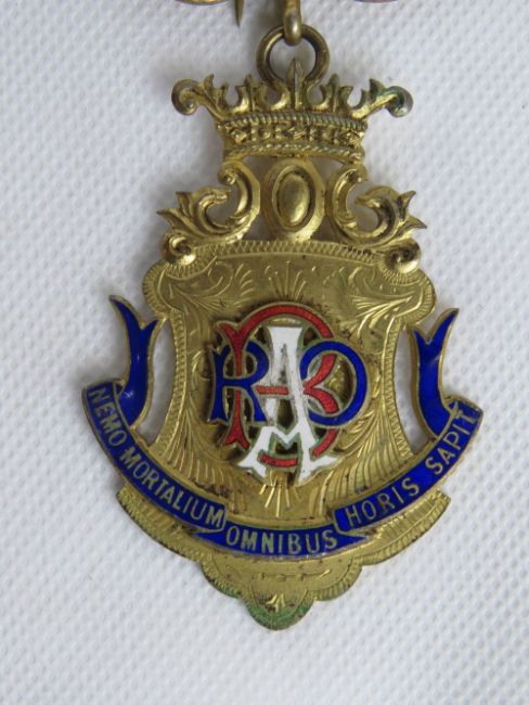 A hallmarked silver gilt Royal Antediluvian Order of Buffaloes (RAOB) secretary medal with ribbon, made by L. Simpson London, HM London 1957.