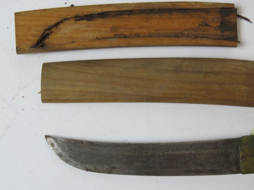 Two hunting daggers, one in the tanto Japanese style (sheath slightly a/f).