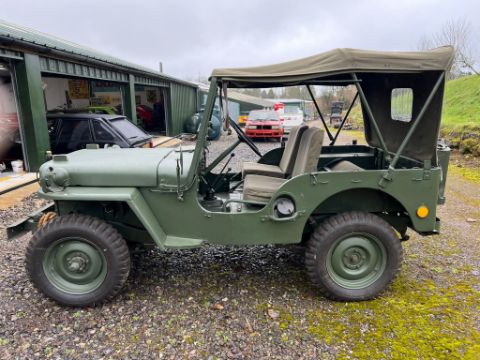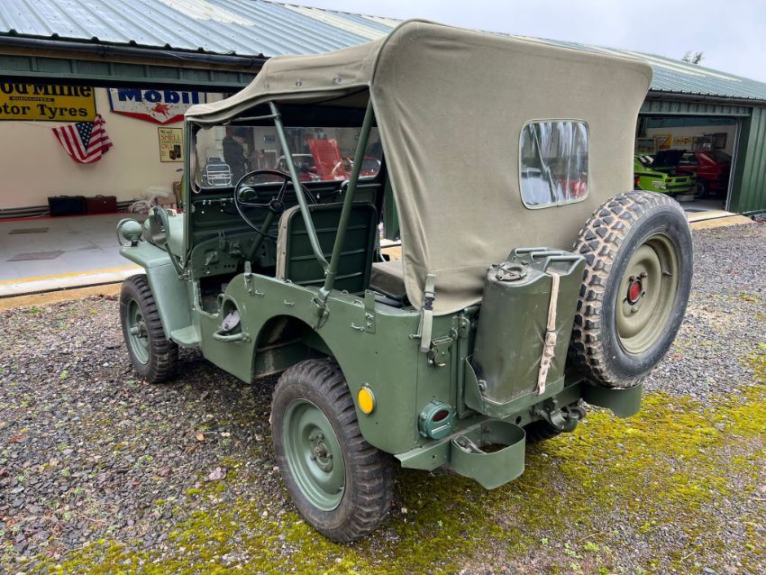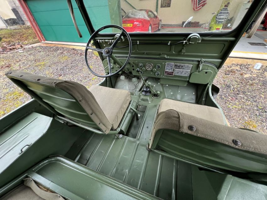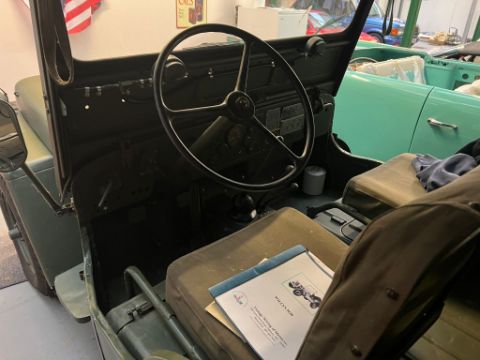 Jeep green having cloth seats, rear bench and soft top together with ancillary items.