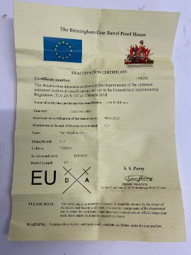 A deactivated (EU Spec) VZ-26 SMG with moving bolt under spring pressure. This lot will be available to collect in person 48 hours after the end of the sale. Please contact the office admin@humbertellis.com for collection appointments / postage quotes / courier information.